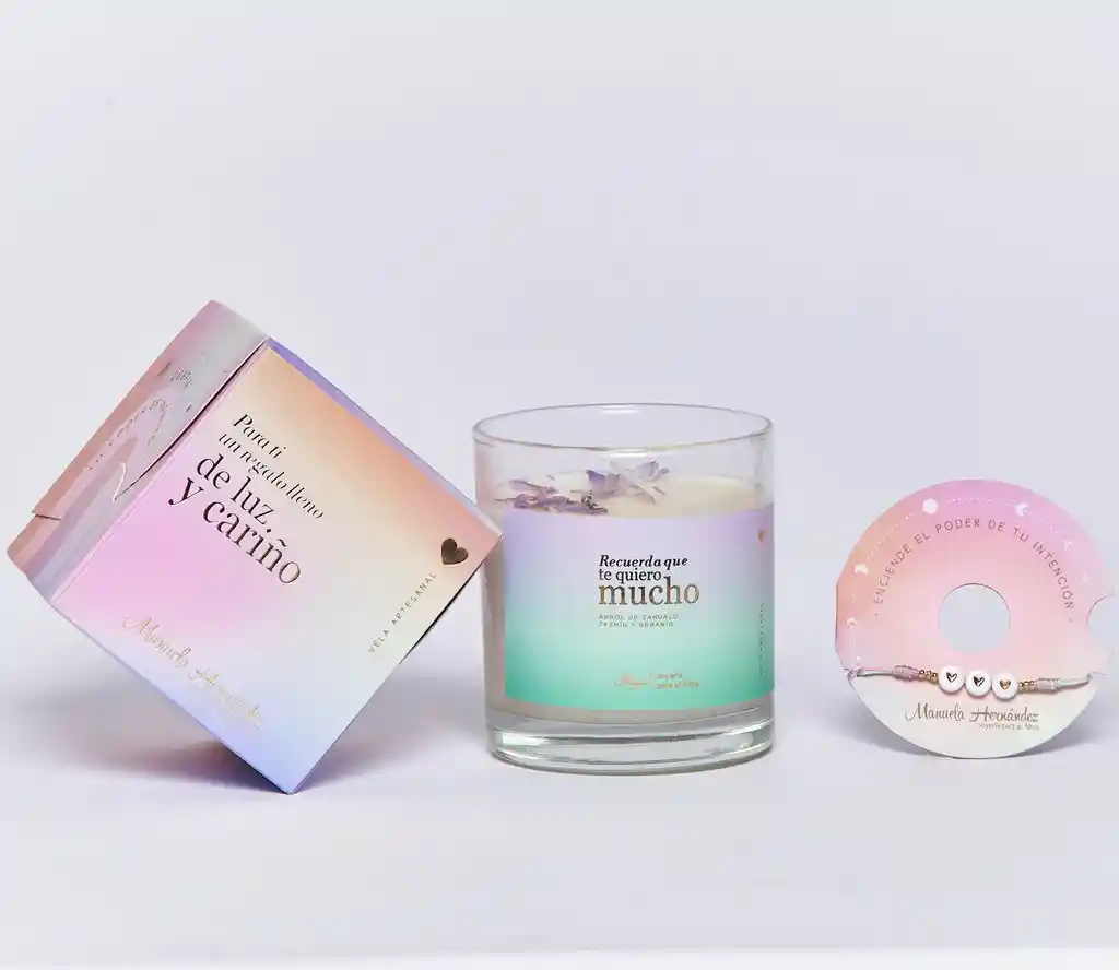 Vela elaborada con aceite de soya, arbol de sandalo, jazmin y geranio.