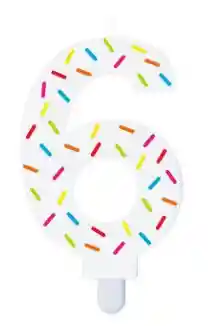 VELA SEMPERTEX NUMERICA #6 COLOR BLANCO CON CHISPAS DE COLORES