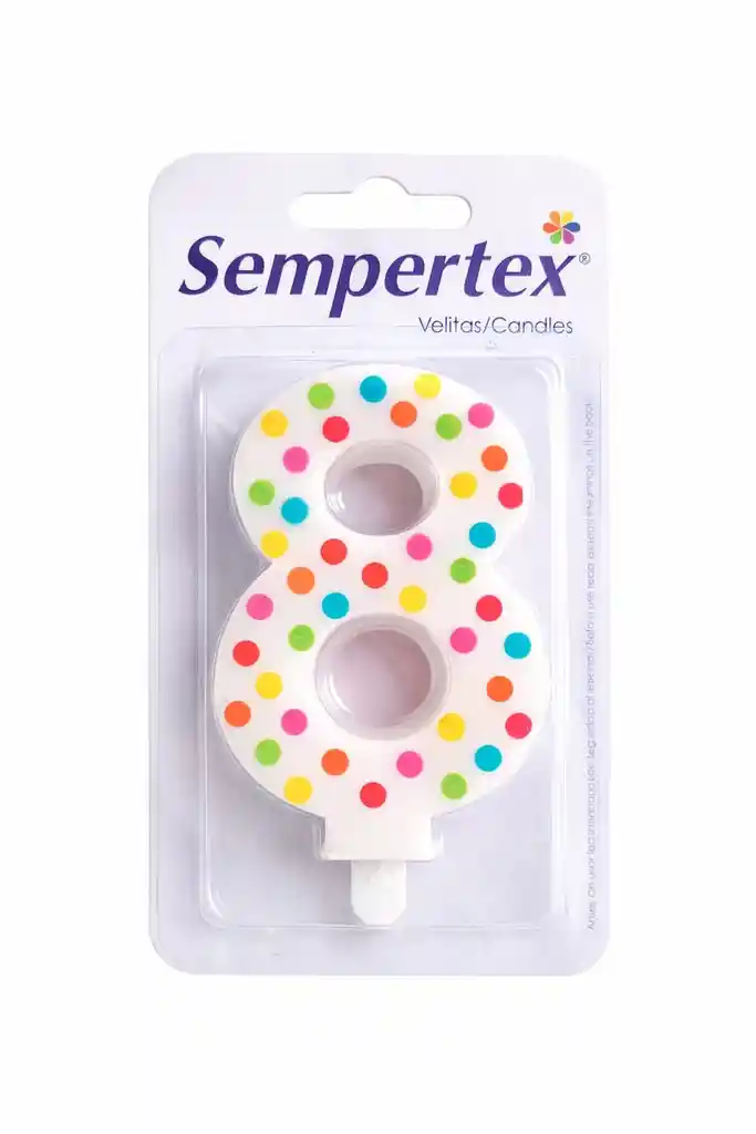 Vela decorativa Sempertex número 8 con diseño Chispas multicolor, ideal para celebrar cumpleaños infantiles de manera alegre y colorida. Su estilo unisex combina perfectamente con diferentes colores y temáticas de torta, aportando un toque divertido y especial a la decoración. Elaborada con materiales de alta calidad, brinda una llama estable y un excelente acabado, siendo ideal para resaltar el momento del cumpleaños. Incluye: •1 vela Sempertex número 8 Chispas Tener en Cuenta: Los demás elementos que aparecen en la imagen (torta, decoraciones y accesorios) son únicamente para ambientación de la imagen y no están incluidos.
