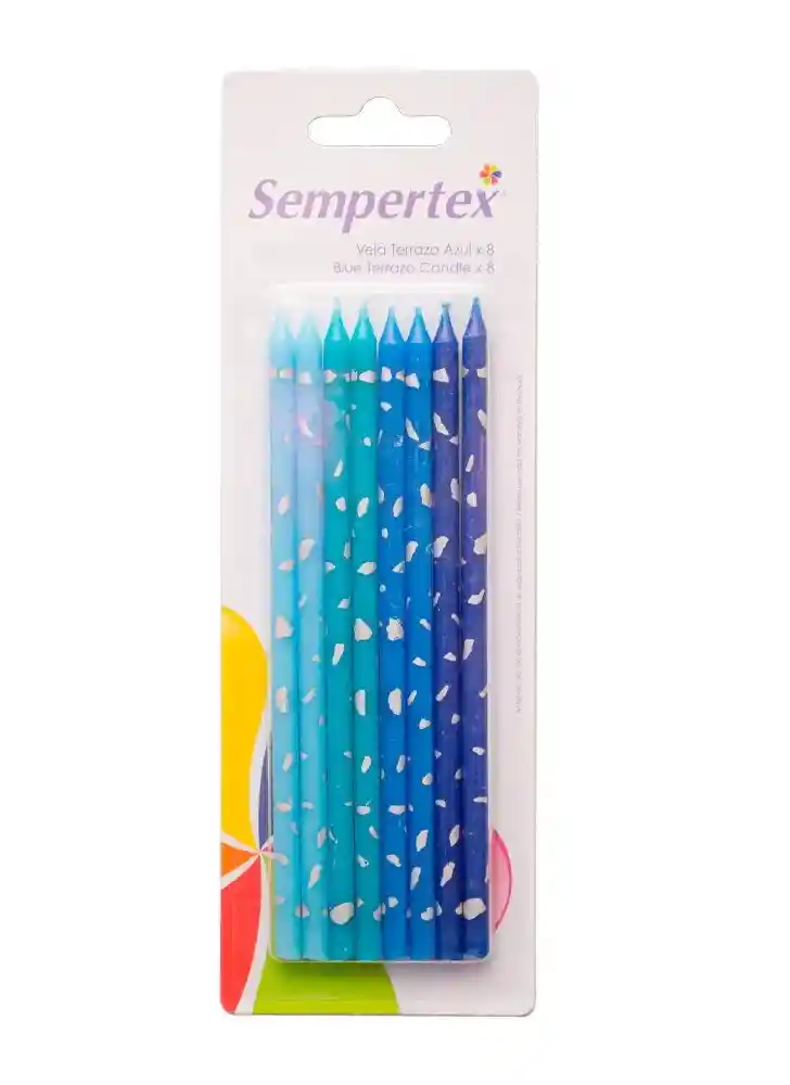 Vela Terrazo Azul X 8 Unidades Sempertex