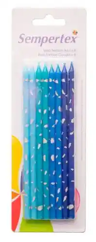 Set de 8 velas estilo terrazo en color azul, con diseño moderno y decorativo. Ideales para cumpleaños, celebraciones y decoración de mesas.