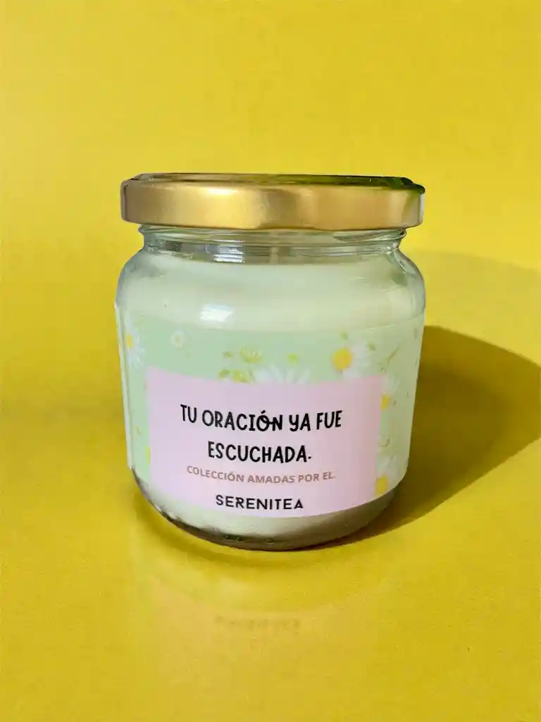 Vela aromatica con un mensaje muy lindo acerca de la oracion, peso neto 375gr. aroma sandao & rosas.