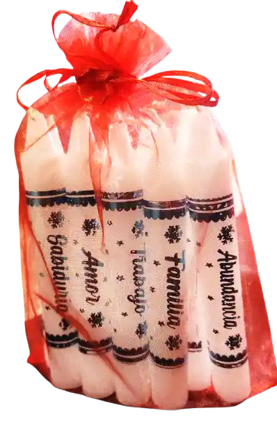 velas blancas, decoradas con peticiones de fe, X 10 und. 14,5 cm. largo X 2 cm. anc.