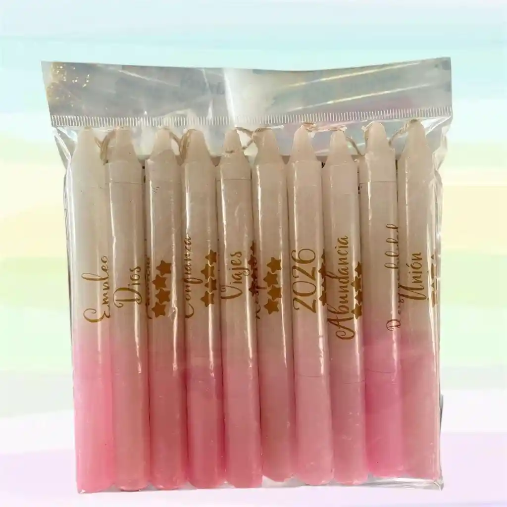 Un detalle lleno de magia y buenas intenciones. Este set incluye 10 velas con deseos surtidas, cada una con un color o mensaje diferente, pensadas para atraer energías positivas como amor, paz, salud, abundancia, gratitud y más.