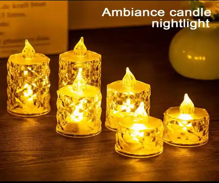 Velas de cristal sin llama para decoración del hogar, luces LED parpadeantes funciona con pilas, 3 tamaños a diferentes 9 cm , caja x 24