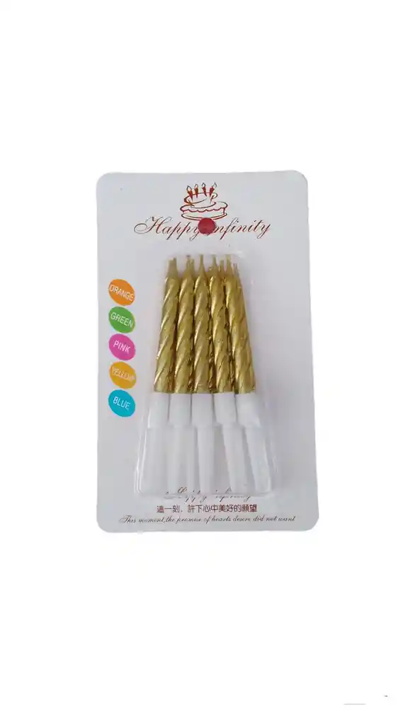 Velas De Cumpleaños En Espiral 10 Unidades Color Dorado