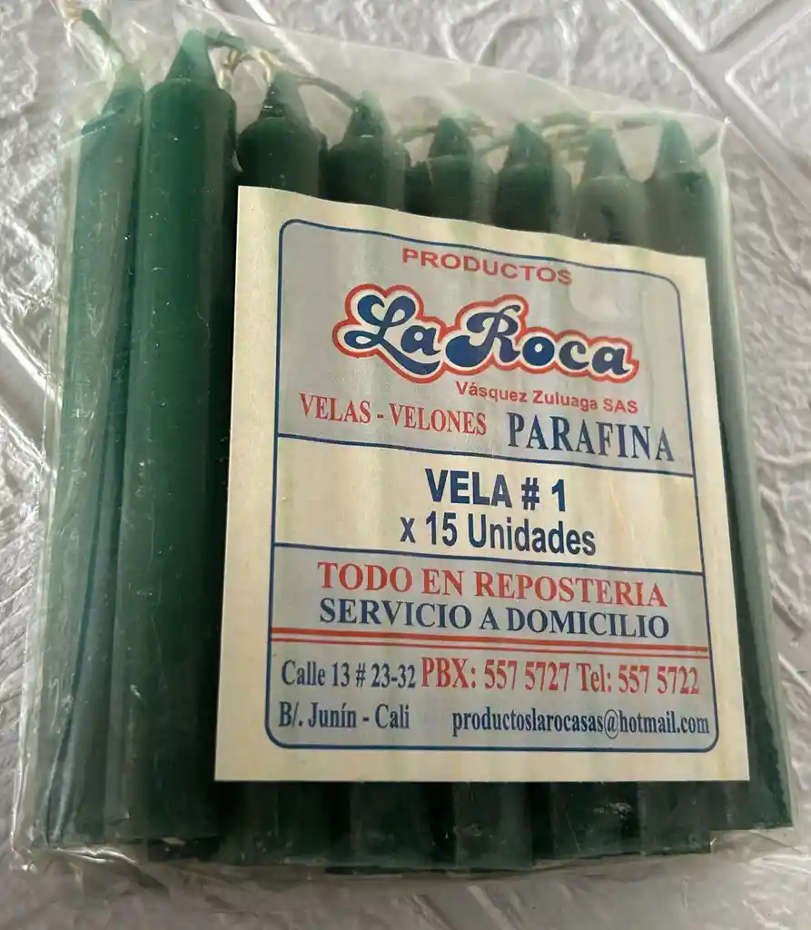 VELAS DE NAVIDAD LA ROCA PAQUETE X15 UNIDADES VERDE OSCURA COD.2714
