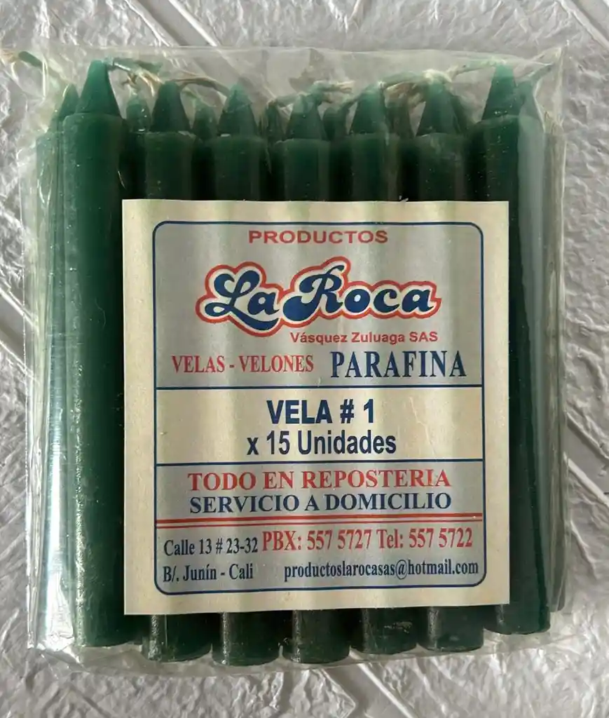 VELAS DE NAVIDAD LA ROCA PAQUETE X15 UNIDADES VERDE OSCURA COD.2714