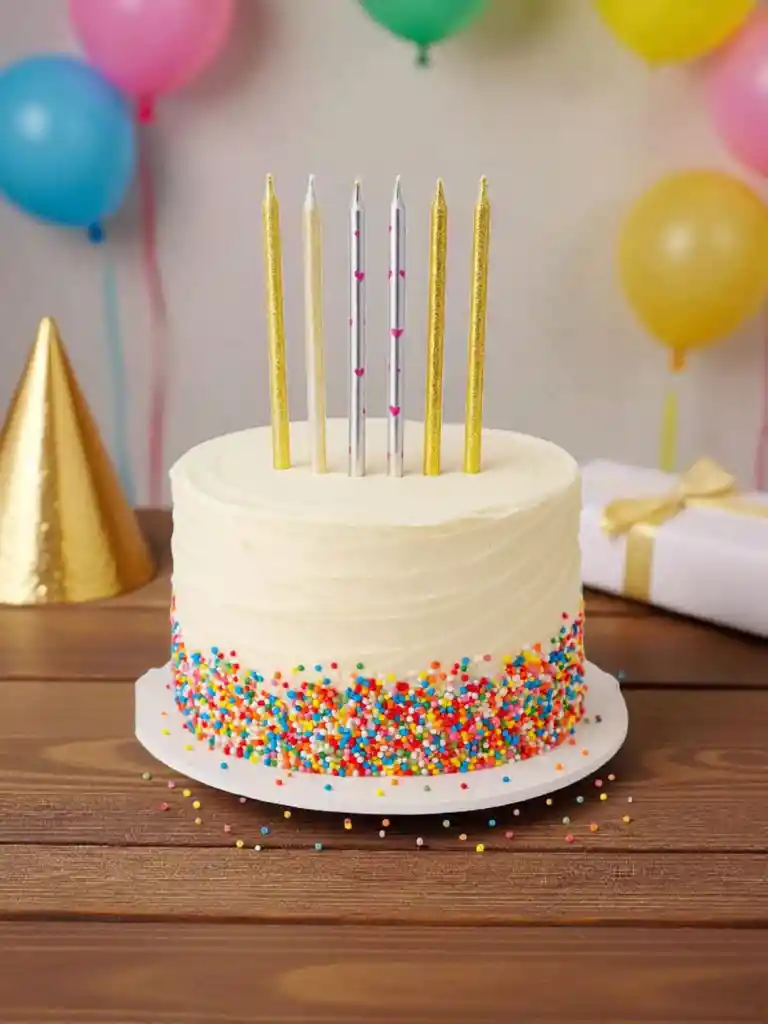 Velas Doradas con Diseño de Corazones X6 Unidades / 13 cm Descripción: Agrega un toque elegante a tus celebraciones con este set de 6 velas doradas decoradas con diseño de Corazones Fucsia. Su acabado brillante las convierte en el detalle perfecto para pasteles de cumpleaños, aniversarios o eventos especiales. Características: •Contiene 6 velas de 13 cm de altura sin base. •Con Base: 14 cm •Diseño cromado con brillo dorado y Corazones Fucsia decorativas. •Base plástica para fácil colocación sobre el pastel. •Ideal para fiestas, cumpleaños y ocasiones especiales. •Incluye: 4 velas doradas, 2 Plateadas Nota: solo vienen incluidas las 6 velas. Los demás accesorios y elementos son únicamente para ambientar la fotografía.