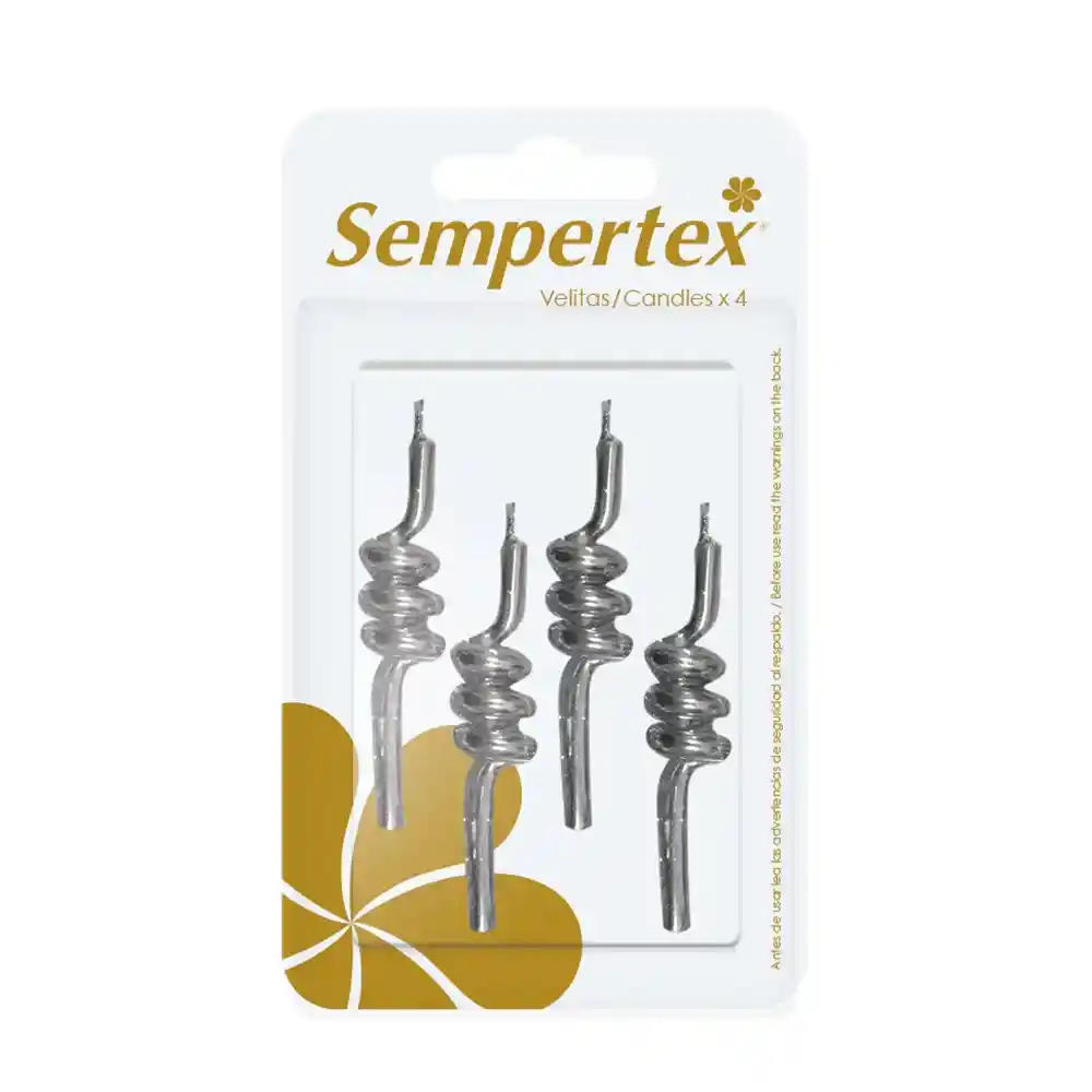 Paquete de velas x4 en espiral color plateado Velas de cumpleaños Velas plateadas