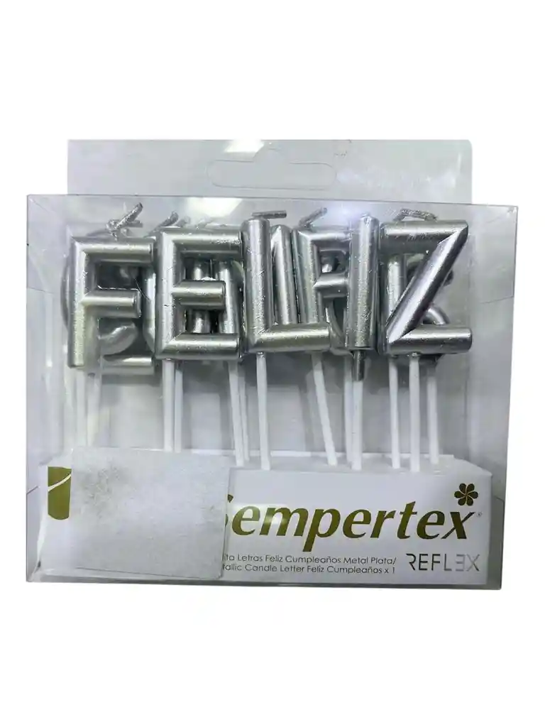 PAQUETE DE 15 VELITAS CON LA PALABRA FELIZ CUMPLEAÑOS EN COLOR PLATEADO