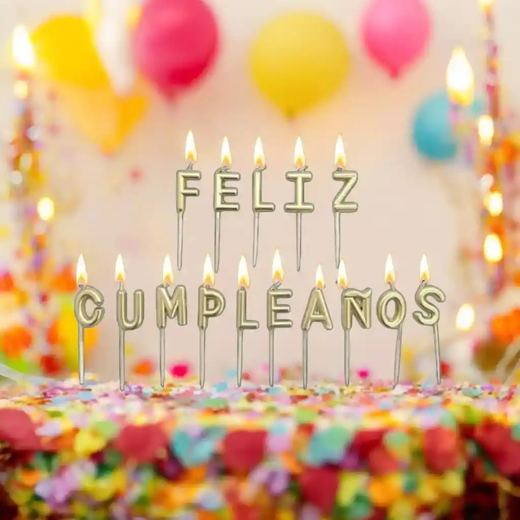 Set De Velas "Feliz Cumpleaños" En Color DORADO. Con este juego de velas tan original no tendrás que adivinar ni ocultar la edad del cumpleañero o cumpleañera y servirá en más de una ocasión para celebrarlo. Se sirve en un color cargado de buenas vibraciones y positividad Cada vela representa una letra e incluye una peana para colocarla con facilidad sobre la torta de cumpleaños. ¡Sopla fuerte, no se caerán! Seguro que la suerte te sonreirá y tus deseos se cumplirán. Un detalle para incluir en tu próximo regalo de cumpleaños que hará sonreír, palabra de Enriqueta, a quien lo reciba