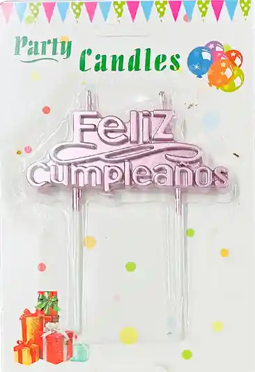 VELAS LETRERO FELIZ CUMPLEAÑOS ORO ROSA