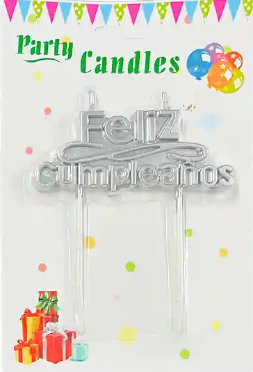 VELAS LETRERO FELIZ CUMPLEAÑOS PLATEADO