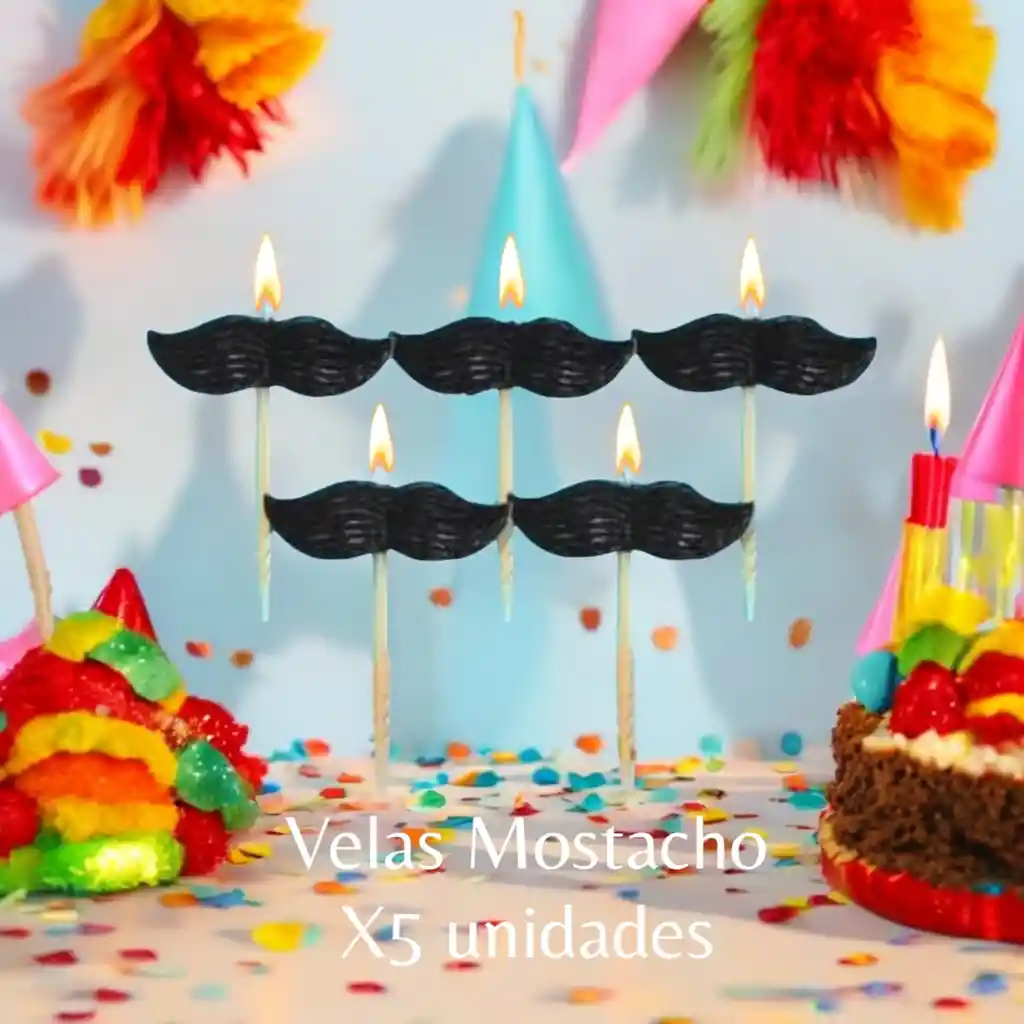 ¡Añade un toque de diversión y estilo a tus celebraciones con nuestro paquete de velas en forma de mostacho! Vienen 5 Unidades Color: Negro Cada Mostacho mide de ancho:4cm