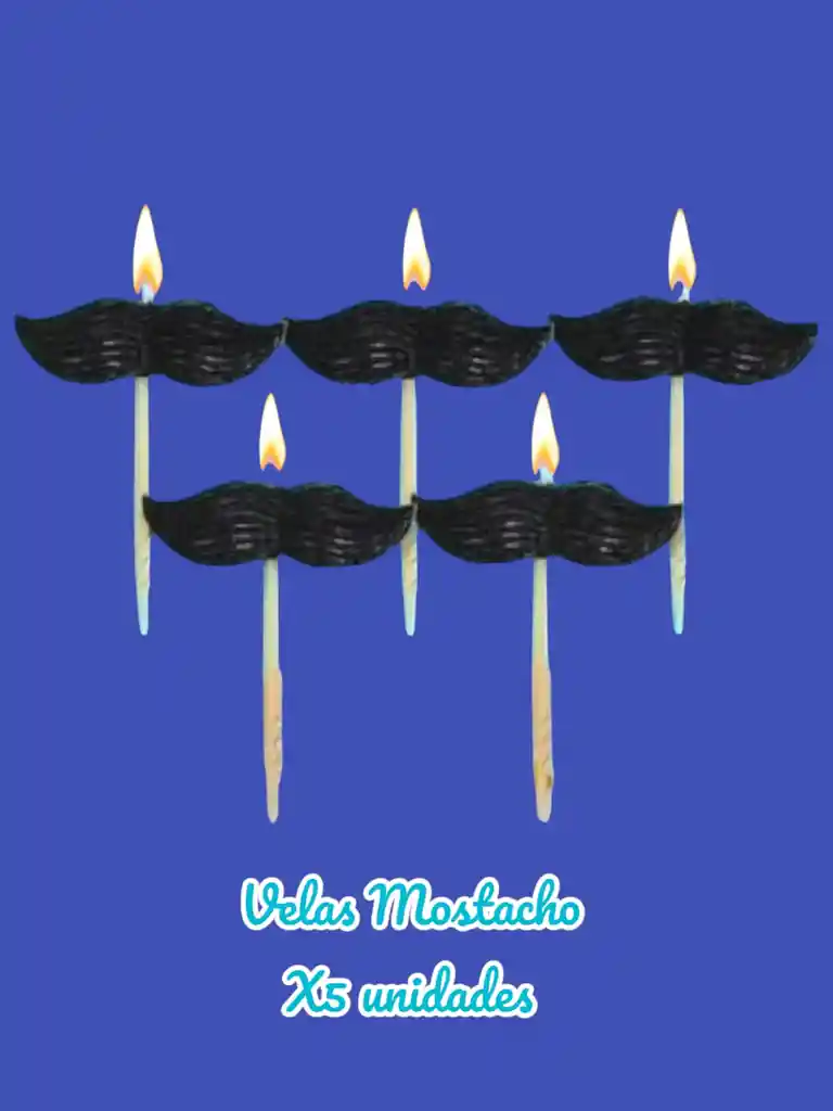 ¡Añade un toque de diversión y estilo a tus celebraciones con nuestro paquete de velas en forma de mostacho! Vienen 5 Unidades Color: Negro Cada Mostacho mide de ancho:4cm
