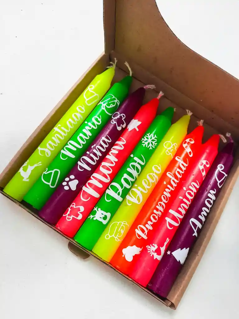 Caja estandar x 9 velas. Esta viene en colores surtidos y cada vela tiene un deseo diferente. los deseos: salud, felicidad, familia, dinero, amor, prosperidad, éxito, paz y sabiduría. Perfecta para regalar. Antes de realizar tu pedido comunícate al WhatsApp 3142273513 para una mayor atención personalizada y ultimar detalles.