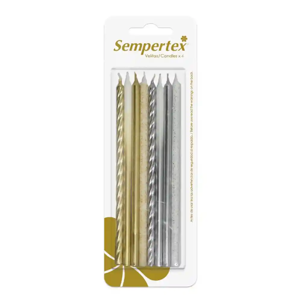 Paquete de velas surtidas x8 doradas y plateadas Velas para cumpleaños