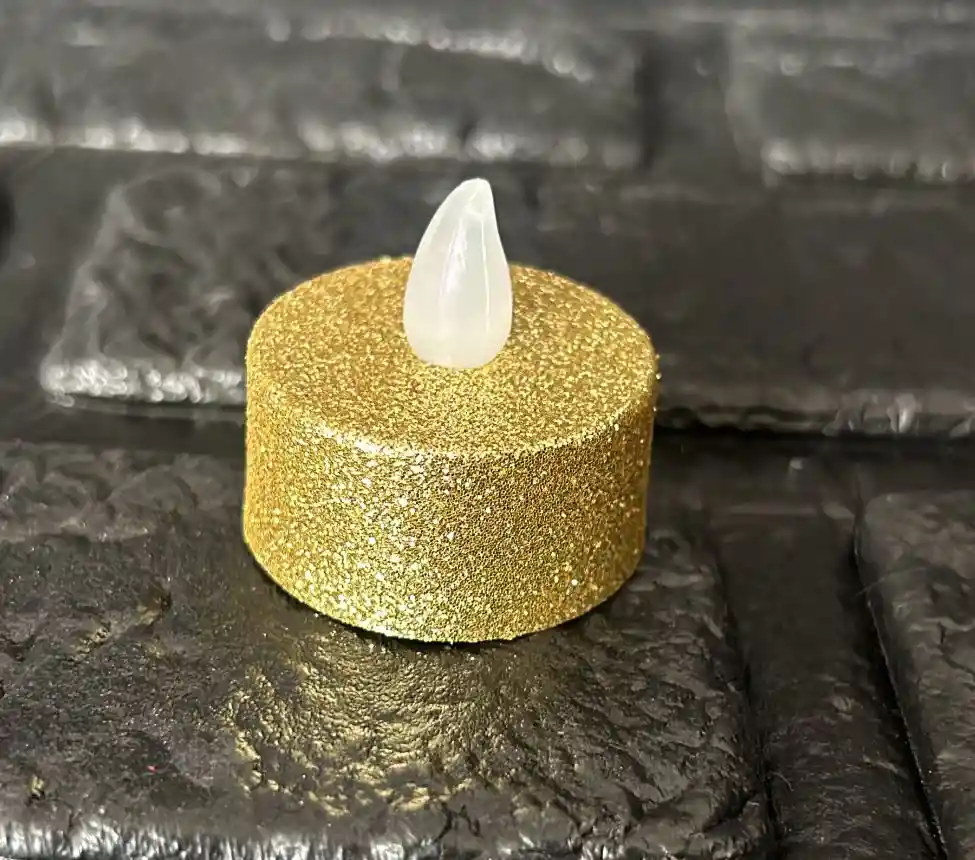 VELAS / VELADORA MINI LED DORADA ESCARCHADA PILAS COD.2826