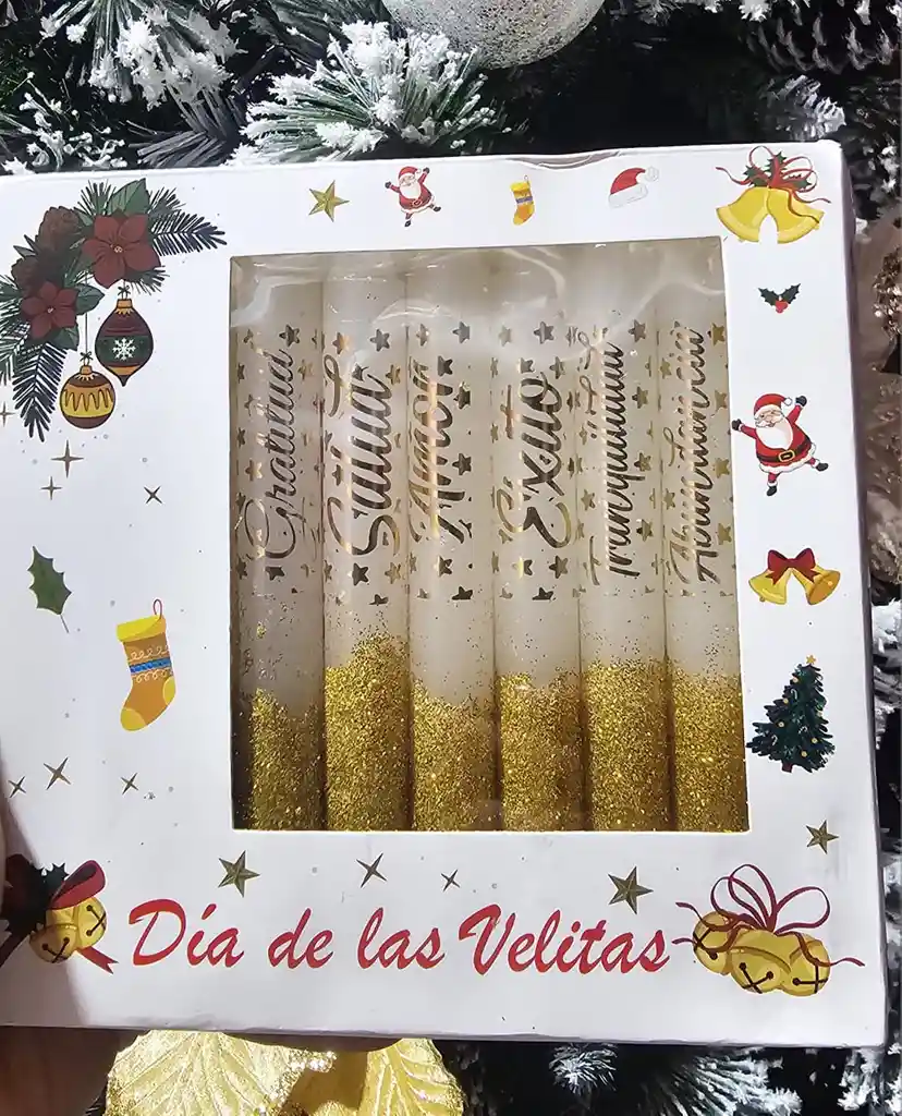 Este es un hermoso y significativo Kit de 10 Velas de Los Deseos para recibir el Año Nuevo con prosperidad. Cada vela es de color blanco, decorada con grabados dorados de palabras clave (como Salud, Amor, Prosperidad y Viajes) y cuenta con una base de escarcha dorada brillante , lo que las convierte en el elemento perfecto para rituales de fin de año o como decoración elegante y llena de intención. Ideales para encender una vela por cada deseo o por cada mes del nuevo ciclo, este kit de 10 unidades te ayuda a manifestar tus intenciones y a atraer las mejores vibras.