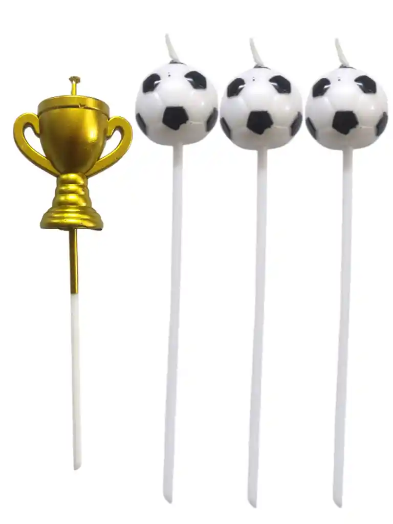 Velas para Pastel de cumpleaños celebración forma de balon y copa 3 velas en forma de balon 1 copa en forma de copa dorada traen soporte para poner en tu torta Disponible para envio inmediato si necesitas algo adicional indicanos y con gusto te colaboramos