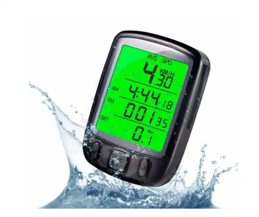VELOCÍMETRO ALAMBRICO CON LUZ DE FONDO VERDE - 26 funciones principales. - Pantalla LCD. - Resistente a la lluvia. - Fácil instalación, buena durabilidad. - Alimentado por batería CR2032. - Fácil de leer pantalla LCD, compañero ideal para su bicicleta. ESPECIFICACIONES TÉCNICAS: 1. SPD : velocidad actual 2. ODO : odómetro 3. DST : distancia de viaje 4. MXS : velocidad máxima 5. AVS : velocidad promedio 6. TTM : tiempo total de viaje 7. TM : tiempo de viaje 8. RAT : tiempo total de conducción 9. CLK : reloj ( 12 H - 24 H ) 10. SW : cronómetro 11. Temperatura 12. TM UP : tiempo de viaje hasta 13. TM DN : tiempo de viaje conteo regresivo 14 TRIP UP : distancia de viaje hasta 15. TIRP DN : distancia de viaje conteo regresivo 16. Comparador + / - 17. Alerta de mantenimiento 18. Recordatorio de cuidado 19. Recordatorio de exceso de velocidad 20. Indicador de batería baja 21. Configuración de la circunferencia de los neumáticos ( 0mm - 9999 mm ) 22. Ajuste del último valor del cuentómetro - odo 23. Configuración del último valor del tiempo total 24. Memoria de marco congelado 25. Con luz de fondo 26. Auto ON - OFF