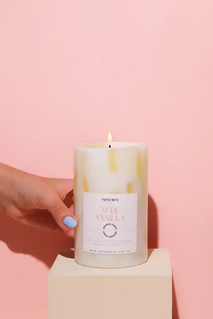 Vela aromática ideal para ambientar y decorar tus espacios favoritos. Nuestra vela Nude vanilla está compuesta con crema de vainilla, coco y notas de galleta con haba tonka.