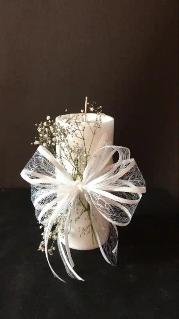 Velón / Vela de Condolencia decorado con un Moño y Florecitas