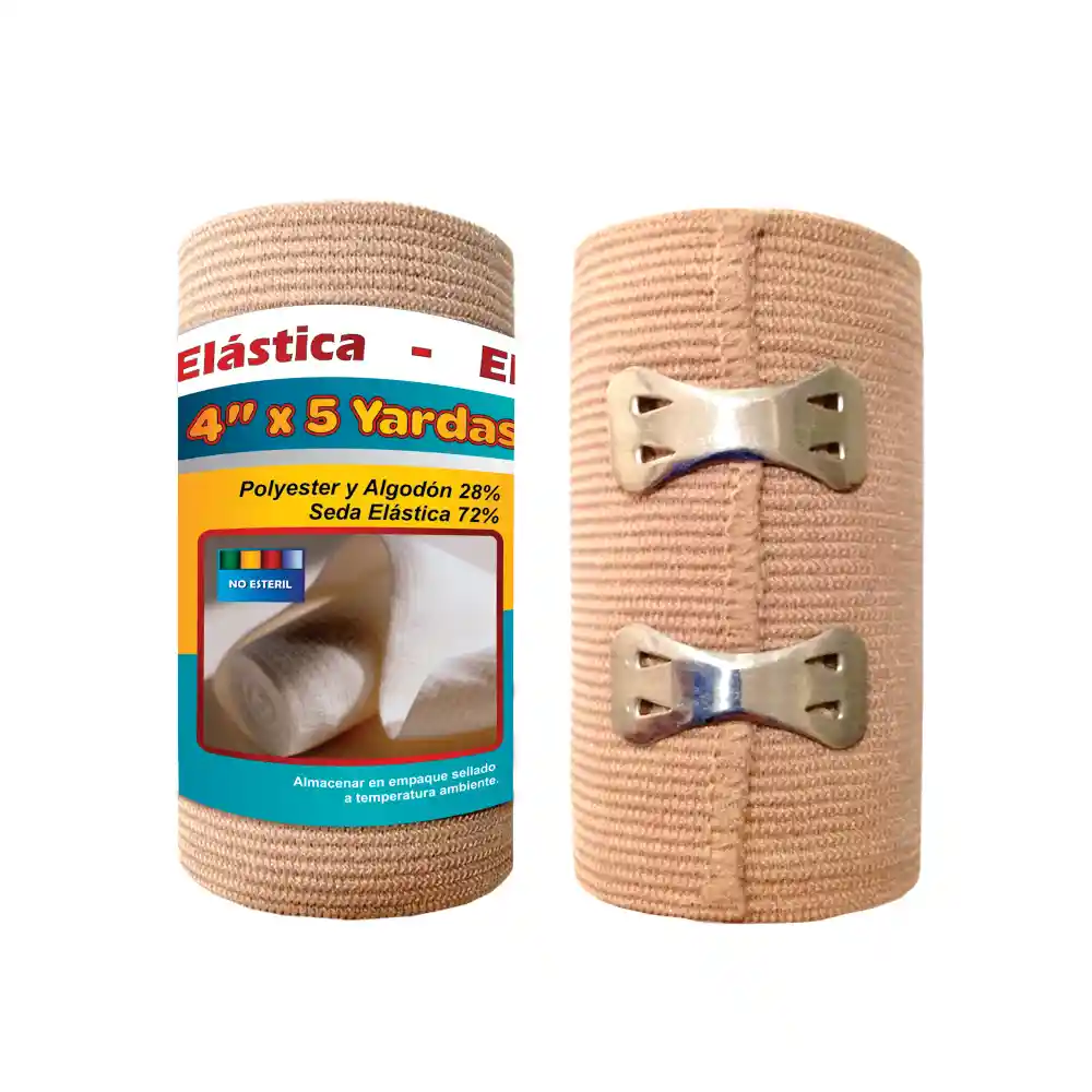 Venda Elástica de color piel, en material tejido de poliester con hilos algodón con seda elástica.