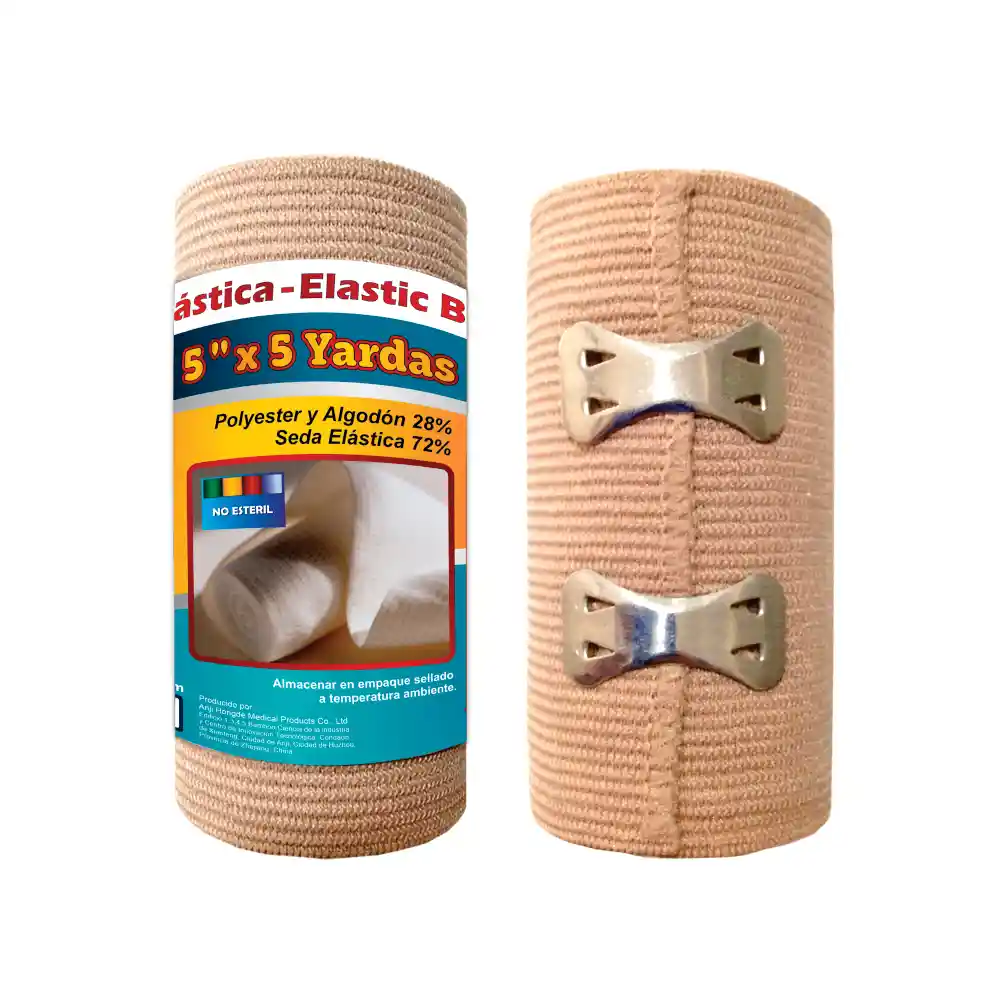 Venda Elástica de color piel, en material tejido de poliester con hilos algodón con seda elástica.