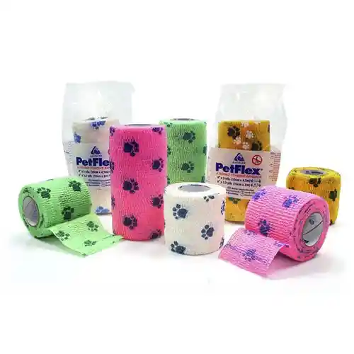 Venda cohesiva para perros, rollo de 4.5M X 10CM Venda cohesiva para perros – Easy Tear (parte facil) COLORES: blanco, rosado, lila, morado, verde, azul, naranja, etc. Nuestra venda cohesiva para perros provee compresión controlada con sujeción sin deslizamiento. Aplicada correctamente provee un vendaje compresivo excelente que no corta la circulación. Mantiene la medida original y no encoge a lo ancho. Permite la aireación de la zona vendada con un vendaje liviano y resistente al agua. Se fija a si misma sin adherirse a la piel, no necesita clips ni sujetadores. No se afloja con la transpiración o el movimiento. Removerla es muy fácil y rápido, se puede cortar con tijeras sin desenrollar. APLICACIONES: Vendajes de patas de caballos deportivos. Vendajes de colas de caballos. Vendajes inmovilizadores caninos, felinos, equinos. Fijación de catéteres. Vendajes compresivos para detener hemorragias. Vendajes post operatorios. Vendajes de primeros auxilios. Identificación de animales.