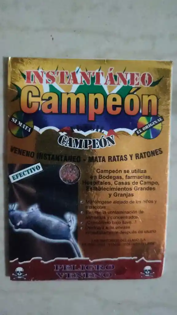 Utilizado en fincas, casa, bodegas, etc. Metonil al 90%.Mata al instante ratas y ratones