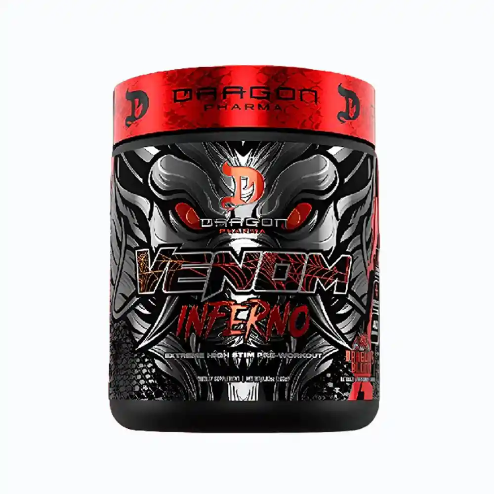 Venom Inferno PreWorkout es un cóctel explosivo de estimulantes de alta potencia que te llamarán a cada entrenamiento con una intensidad y una resistencia infinita. Una vez que use Venom, nunca querrá entrenar sin él. La nueva versión de Venom inferno PreWorkout es sin duda la fórmula más completa del mercado para liberar tu verdadero potencial a la hora de entrenar. Está compuesto con una fórmula altamente estimulante y con componentes para mejorar tu concentración mental como lo son la 𝗖𝗮𝗳𝗲𝗶𝗻𝗮 𝗔𝗻𝗵𝘆𝗱𝗿𝗼𝘂𝘀, 𝗟-𝗧𝗶𝗿𝗼𝘀𝗶𝗻𝗮 𝘆 𝗗𝘆𝗻𝗮𝗺𝗶𝗻𝗲 . Actúa directamente sobre el sistema nervioso central al inhibir la percepción de fatiga y aumentar los niveles de energía en el cuerpo.