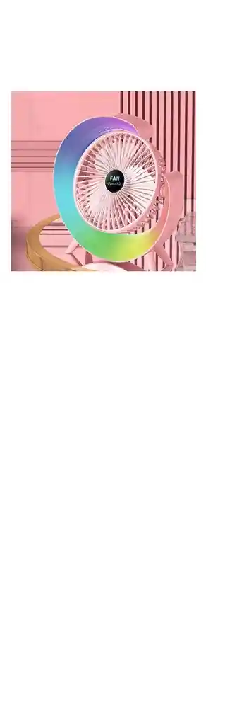 Miniventilador superpotente con lámpara de mesa RGB de colores , RECARGABLE Y TAMBIÉN SE PUEDE CONECTAR DIRECTAMENTE A LA TOMA DE CORRIENTE. — Velocidad del ventilador: 3 velocidades — Material: plástico ABS de primera calidad — Peso: 268 g — Tamaño: 24 cm (altura) x 24 (ancho) x 5 (diámetro) — Potencia de salida: 5 W — Duración de la batería: 150 — 180 minutos — Tiempo de carga: 3 horas — Corriente de carga: 5 V/0,5 A — Varilla de ventilador flexible de alta calidad, ajustable a 180° grados — Tipo de interruptor: botón lateral — Modo de fuente de alimentación: USB/batería de litio integrada — Tipo de batería: Li-ion