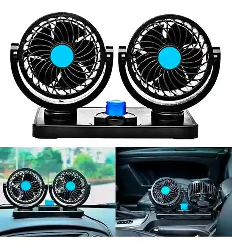 Ventilador Doble Carro 12v Ventilador premium de 12 V que hace soplar aire caliente con eficacia cuando el carro está estacionado. Inmediatamente refresca a los pasajeros con los 2 cabezales del ventilador. Sensación fresca para tu bebé o perro a nivel de la parte posterior del asiento con 9 pies de cable y 2 controladores de velocidad cuando el aire acondicionado es débil. Excelente opción para ventilador de coche con diseño que mantiene a los niños seguros. Rápido y eficaz, con eliminación de humo de cigarrillos, tabaco o polvo, remueve el olor de mascotas no deseado. Descongela el parabrisas en cuestión de segundos durante el invierno para un manejo seguro. Mejora la circulación del aire y la calidad del aire se mantiene fresca en automóviles o barcos. El ventilador de doble cuchilla para circulación de aire es perfecto para el funcionamiento de carritos de golf durante el verano. Fuerte viento y un bajo nivel de ruido del motor con cinta 3M de alta calidad para asegurar el ventilador al área del tablero de instrumentos o de descanso del brazo. Compatible con todas las camionetas Sedan SUV mini o compacto, pequeño, mediano y de gran tamaño, RV ATV transporta con clavija de mechero de 12 VDC (no apto para camiones de 24 Ventilador Doble Carro 12v