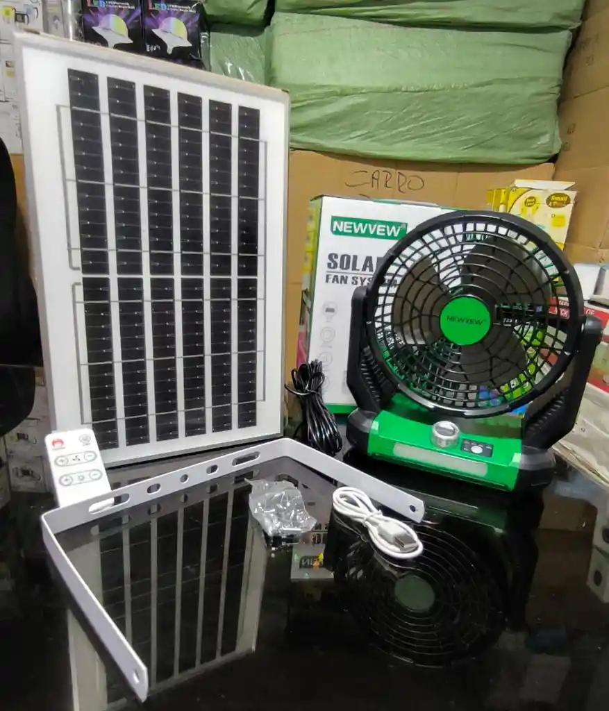 Suministro de aire de gran angular Libre para ajustar el ángulo de 90°, la temperatura es más equilibrada, puedes ajustar manualmente hacia arriba y hacia abajo para lograr un suministro de aire multiángulo. Energía solar Carga lateral, panel de fuente de alimentación solar de súper potencia, puedes disfrutar de la frescura en el clima cálido. Diseño de rejilla densa Rejilla densa, para evitar que los dedos del bebé lleguen, use una más segura. Tamaño:Ventilador: 26x23cm Panel solar: 24 x35cm medida cable panel: 4 metros Lista de productos: ventilador x 1 panel solar x 1 control x 1 cable carga x 1 *El ventilador esta divido en dos cajas* 6932786485037 35 x 24 x 3 panel