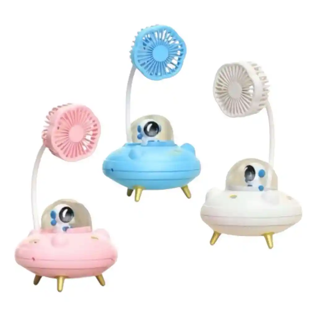 Ventilador Portatil De Nave Astronauta El ventilador con diseño de nave de astronauta es un accesorio portátil con un estilo futurista y único que combina funcionalidad con estética inspirada en el espacio exterior. Su forma está cuidadosamente diseñada para simular una pequeña nave espacial o casco de astronauta, lo que lo convierte en una pieza llamativa y original, ideal para quienes disfrutan de lo novedoso y tecnológico. Este ventilador es compacto y ligero, perfecto para llevar en el bolso, mochila o escritorio. Funciona con batería recargable mediante cable USB, lo que lo hace práctico y amigable con el medio ambiente, permitiendo su uso en cualquier lugar sin depender de tomacorrientes. Es ideal para usar en la oficina, en casa, en clases o durante viajes y salidas.