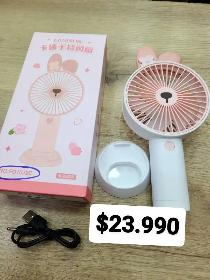 Miniventilador recargable de mano de 18cm x 10cm color Blanco con rosado