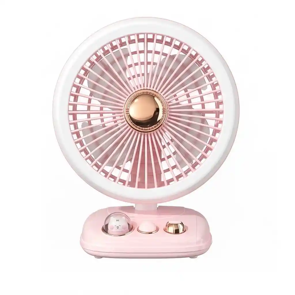 Añade un toque de estilo y frescura a tus espacios con este encantador ventilador portatil de diseño kawaii, ideal para el escritorio, la mesa de noche o actividades al aire libre. Este dispositivo no solo destaca por su estetica elegante con detalles en oro rosa, sino tambien por su versatilidad, ya que incluye un aro de luz LED integrado que funciona como lampara de apoyo. Equipado con una bateria de larga duracion recargable mediante USB, ofrece un flujo de aire potente y silencioso que puedes ajustar segun tu preferencia. Su tamaño compacto y estructura ligera lo hacen facil de transportar, mientras que su base estable incluye controles intuitivos y un tierno detalle decorativo, convirtiendolo en el accesorio funcional y decorativo perfecto para regalar o disfrutar en tu dia a día. Ficha Tecnica: Modelo: YB09 Nombre del producto: Ventilador portatil para exteriores y escritorio Material: Plastico de alta resistencia y componentes electronicos Dimensiones: 18 cm x 13.3 cm x 23.2 cm Potencia nominal: 8W Entrada de carga: 5V 2A Interfaz de carga: USB Funciones: Ventilador de varias velocidades y Luz LED integrada Color: Rosado con detalles tipo oro rosa Caracteristicas especiales: Diseño compacto, ligero y estetica kawaii Politicas de Garantia: Este producto cuenta con una garantia de 30 dias calendario por defectos de fabricacion relacionados con el motor, el sistema de iluminacion o el circuito de carga; para hacerla efectiva, el articulo debe devolverse en su empaque original con todos sus accesorios y no debe presentar señales de maltrato fisico, golpes, humedad o manipulacion tecnica interna. La garantia no cubre el desgaste natural de la bateria por uso prolongado ni daños causados por el uso de cargadores con voltajes superiores a los recomendados. Es indispensable presentar el comprobante de compra para procesar cualquier solicitud de soporte tecnico o cambio tras verificar el estado del equipo.