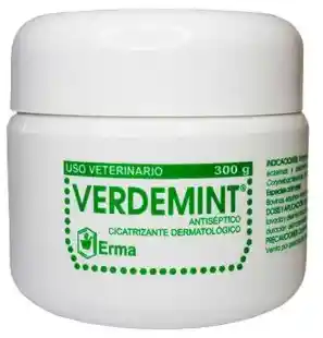 ¿Qué es Verdemint Crema? Verdemint es un ungüento para el tratamiento de infecciones externas post- traumatismos o post-operatorios; eczemas y piodermas producidos por Staphylococcus sp., Streptococcus sp., Corynebacterium sp. y Proteus sp. ¿Para qué sirve Verdemint Ungüento? Como tratamiento de todo tipo de heridas (por trauma, infección o cirugía), quemaduras, escoriaciones, eczema y piodermas (dermatitis con pus). Asimismo se utiliza diariamente para desinfección de ombligos en recién nacidos, en heridas de ubre y grietas en pezones, heridas de difícil cicatrización (úlceras) y laceraciones causadas por sillas y arneses en equinos. Verdemint se puede usar para el control de miasis o gusaneras mezclado con productos insecticidas de uso tópico que contengan coumaphos, metrifonato o diclorvós. ¿Cómo usar Verdemint Crema? Aplicar de 2 a 5 veces al día en cantidad suficiente para cubrir la herida, hasta el cierre y la completa cicatrización. La frecuencia y duración del tratamiento quedan a criterio del Médico Veterinario. En caso de heridas sucias o contaminadas, antes de la primera aplicación, lavar con jabón o soluciones antisépticas, secar y aplicar uniformemente durante el tiempo que sea necesario hasta la recuperación total del tejido. IMPORTANTE: La información y los contenidos presentados tienen un carácter meramente informativo y educativo, y no deben utilizarse como base para el uso de los productos. Los datos y recomendaciones provienen del fabricante o importador, y no nos hacemos responsables por errores u omisiones en el contenido ni por las decisiones tomadas por el usuario basadas en esta información.