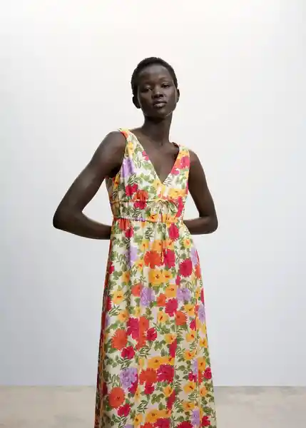 Cierre de Lazo en la Espalda Cierre de Lazos Ajustables Cuello de Pico Diseño Midi Diseño Recto Estampado Floral Tejido Fluido Tirantes Anchos - 47034006_05.