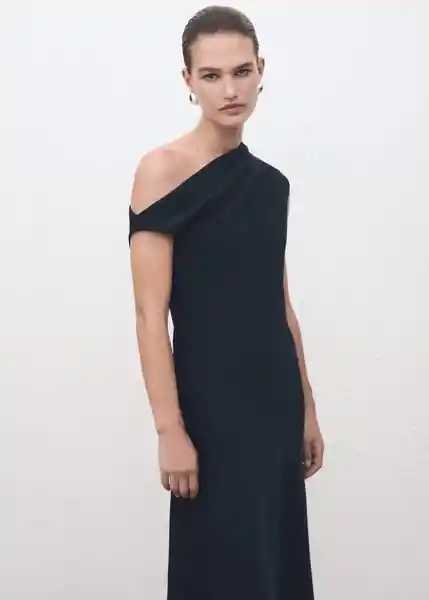 Cierre de Cremallera Lateral Cuello Asimétrico Detalle Fruncido en el Hombro Diseño Evasé Diseño Midi Disponible Plus Sin Mangas - 17047137_56.