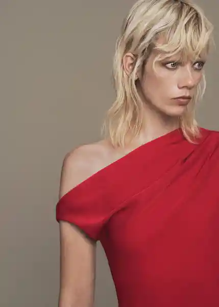 Cierre de Cremallera Lateral Cuello Asimétrico Detalle Fruncido en el Hombro Diseño Evasé Diseño Midi Disponible Plus Sin Mangas - 17047137_70.