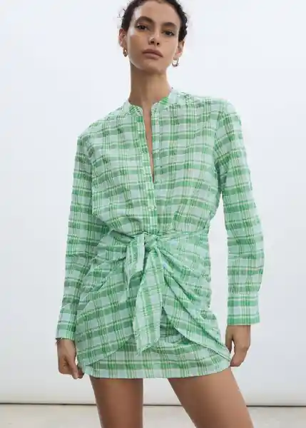 Cierre Delantero Con Botones, Cuello de Tira, Diseño Corto, Diseño Recto, Disponible Plus, Estampado de Cuadros, la Modelo Mide 178 cm y Lleva Una S, Lazo Decorativo, Manga Larga Con Puños Abotonados, Sin Forro Interior, Tejido Mezcla de Algodón - 77082922_43.