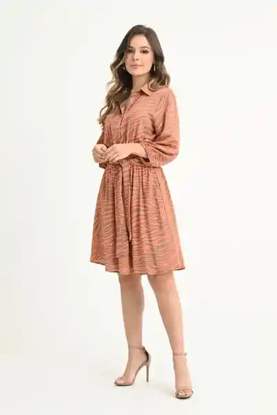 En Chalis Estampado Cuello Camisero Perilla Corta Con Botones Resortado en Cintura Manga 3/4 Con Elástico en Ruedo Anudado Decorativo en Cintura Frontal Bolsillos Forro Interno en Chalis Fondo Entero.