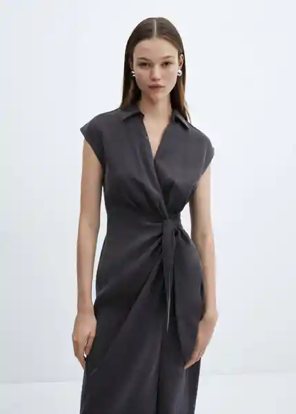 Cierre de Lazo Cuello Camisero Diseño Cruzado Diseño Midi Escote de Pico Cruzado Manga Corta Tejido Mezcla de Modal - 67076728_99.