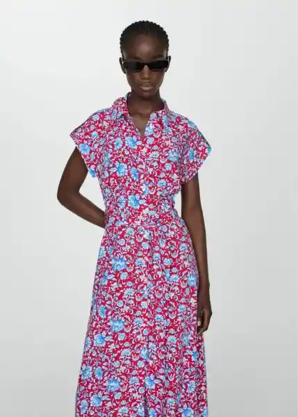 Abertura Lateral Cierre de Botones en la Parte Delantera Cuello Camisero Diseño Estampado Diseño Evasé Diseño Midi Disponible Plus Lazo Ajustable en la Cintura Manga Corta Tejido Fluido - 67028644_70.