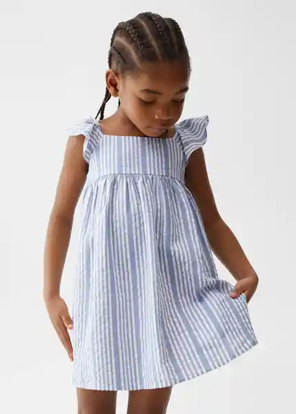 Cuello Redondo Detalle de Volantes Diseño Corto Estampado de Rayas Sin Mangas Tejido 100% Algodón - 47035941_52.