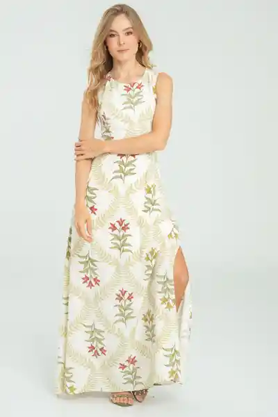 Largo en Chalis Estampado Forrado Escote Redondo Con Botón de Pata de 18L en Posterior Manga Sisa Aberturas en Los Laterales Cierre Semi Invisible Tono a Tono en Costado Izquierdo Pinzas Tanto en Delantero Como en Posterior Silueta Ajustada.