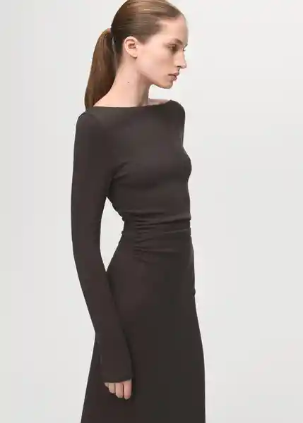 Cuello Redondo Diseño Entallado Diseño Midi Disponible Plus Fruncido Lateral Manga Larga Sin Cierre - 27061280_30.